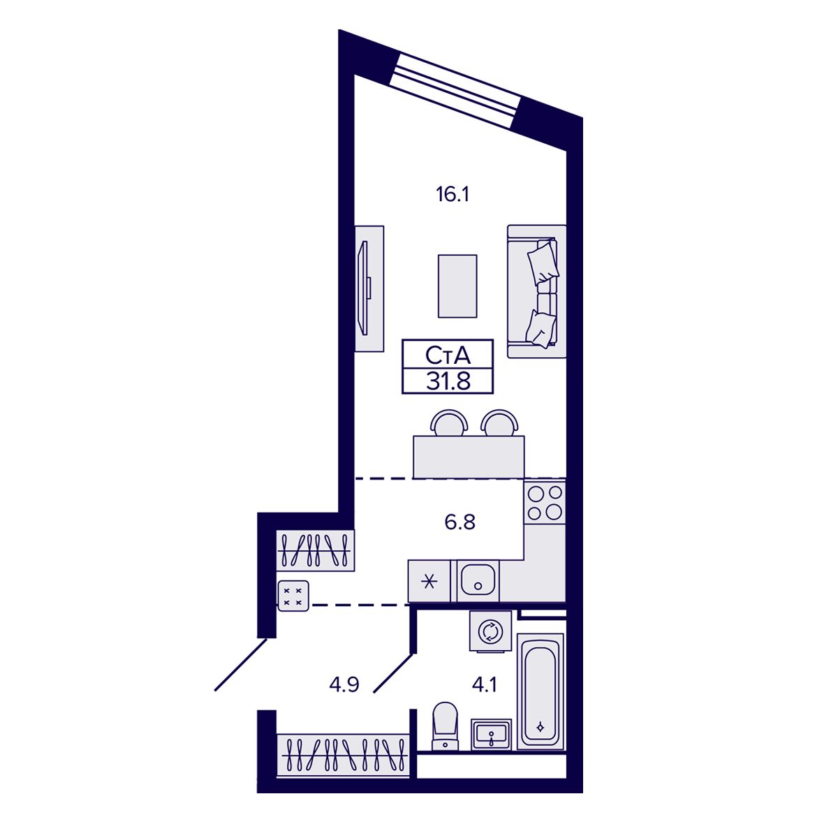 Квартира-студия 31.81 м² №145