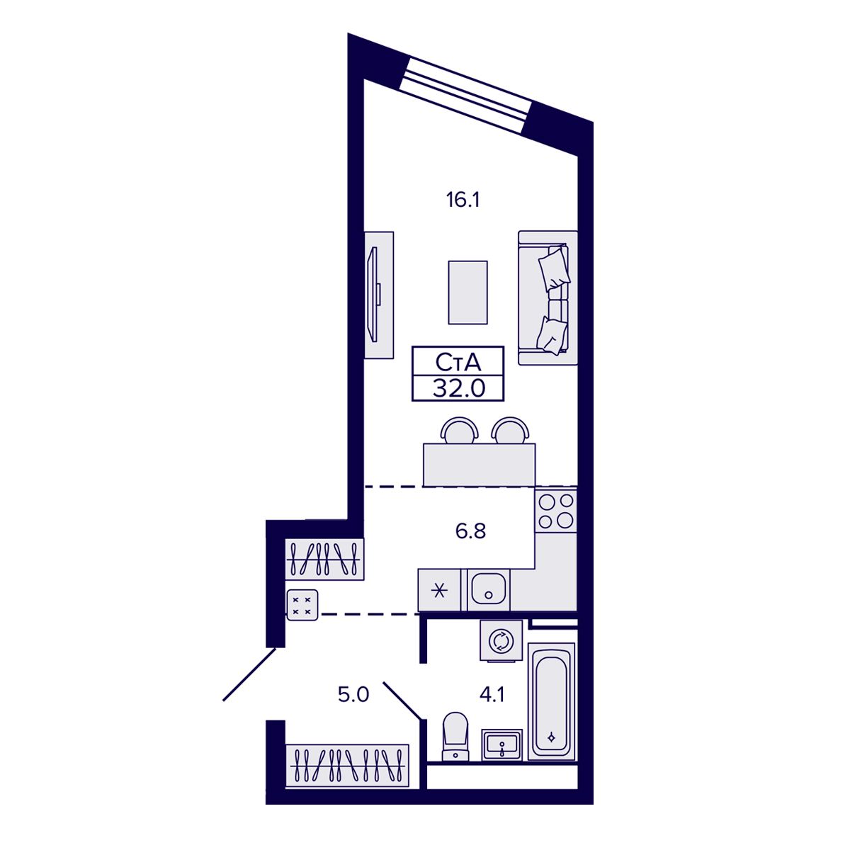 Общая площадь: 32.02 м²
