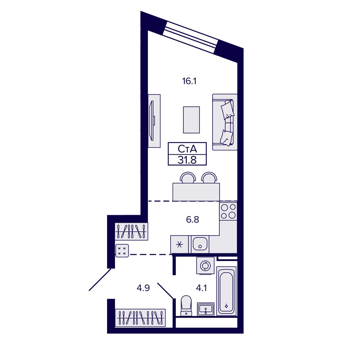 Квартира-студия 31.82 м² №205