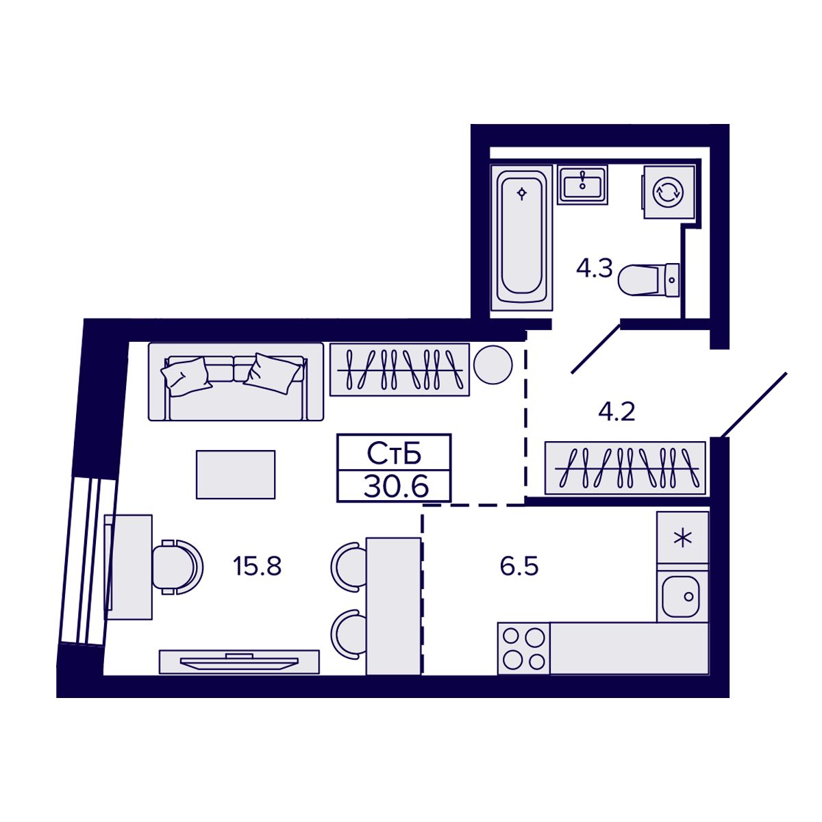 Квартира-студия 30.64 м² №242