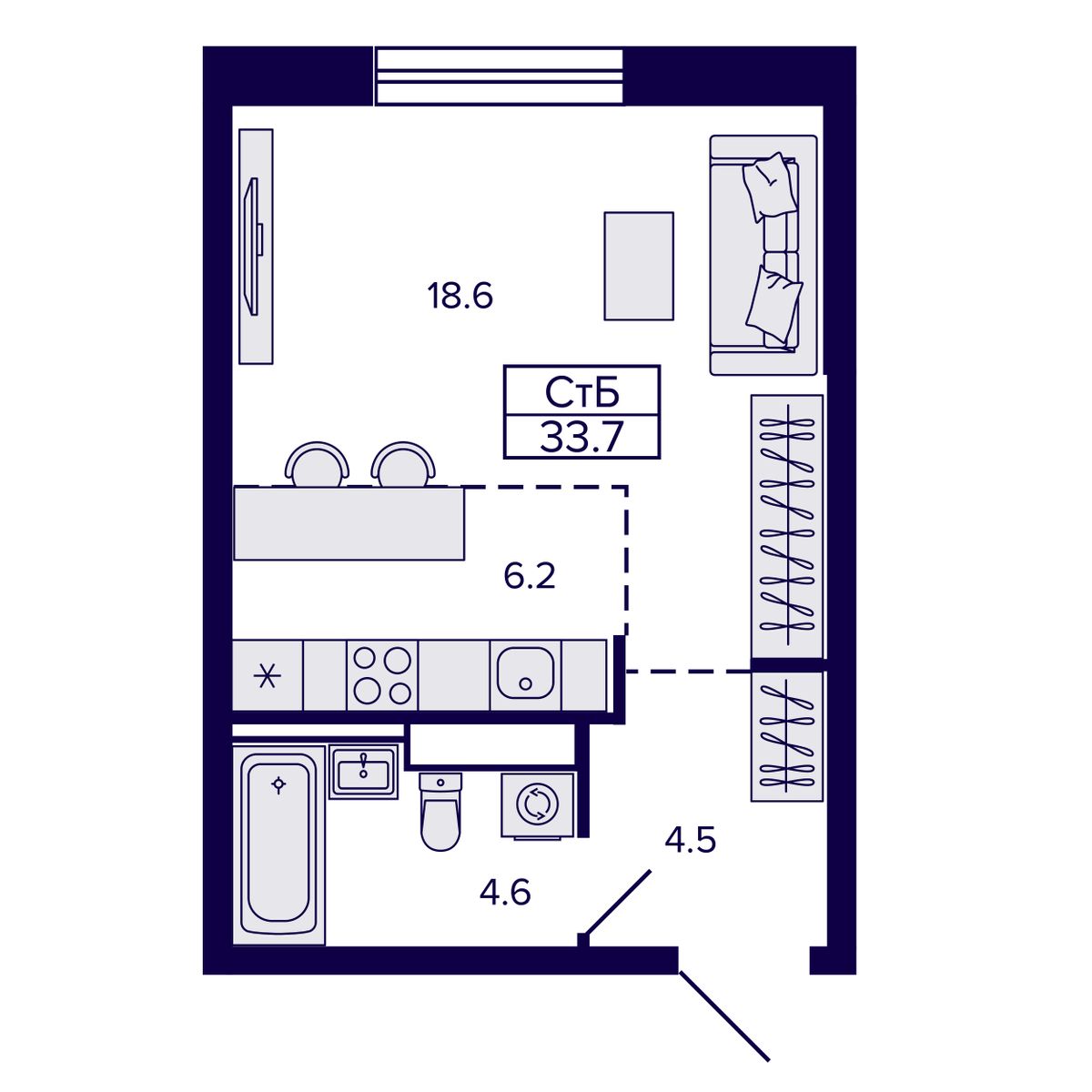 Квартира-студия 33.77 м² №118