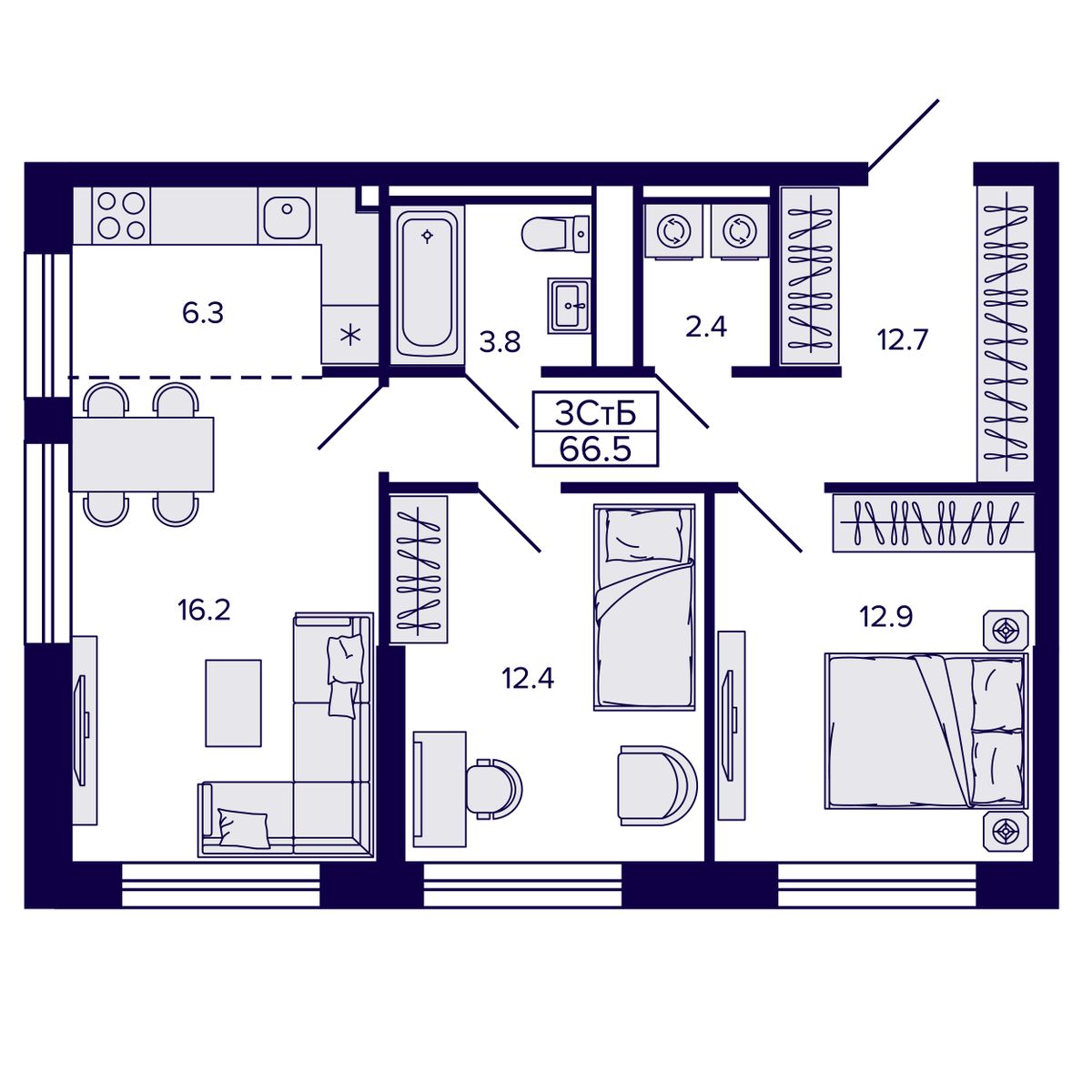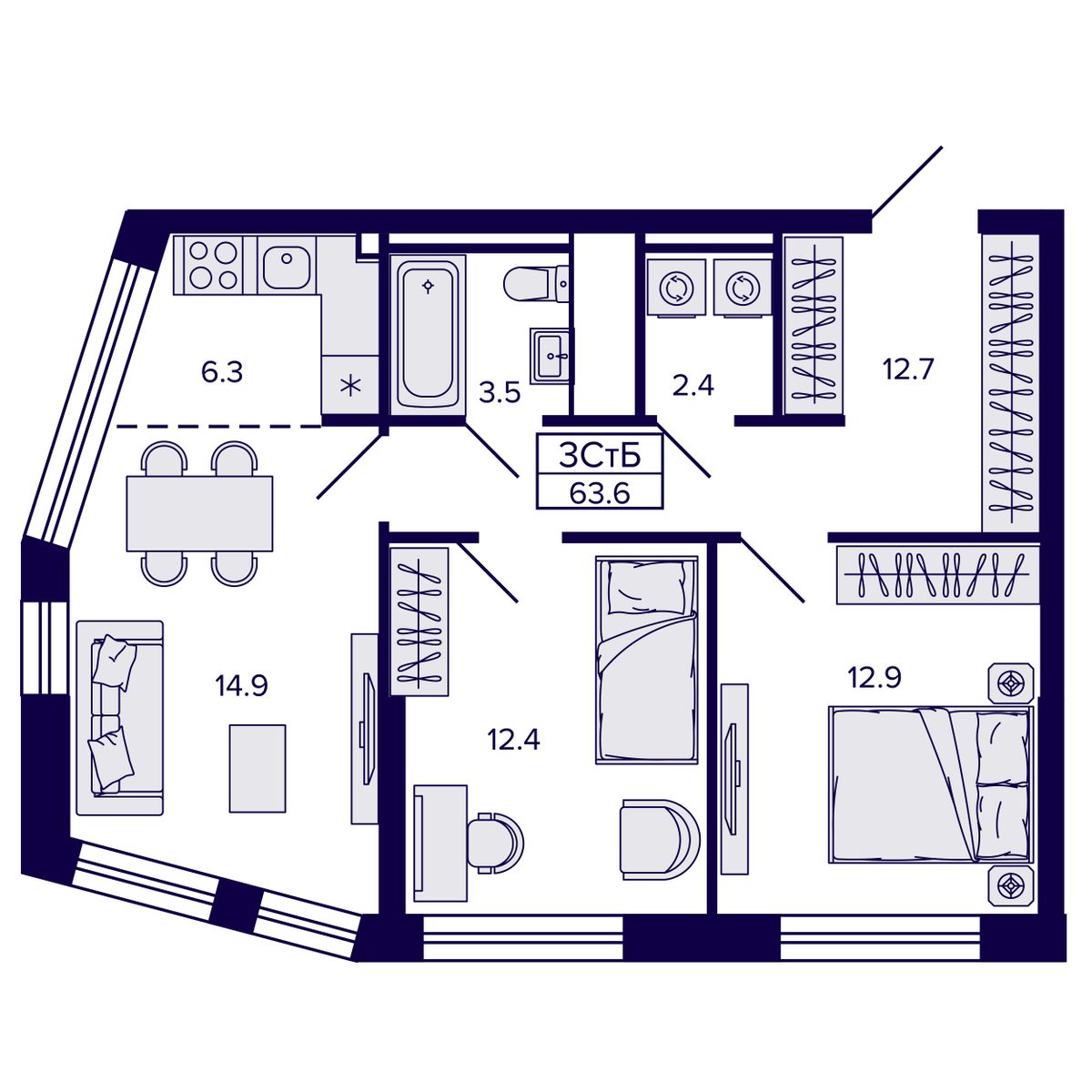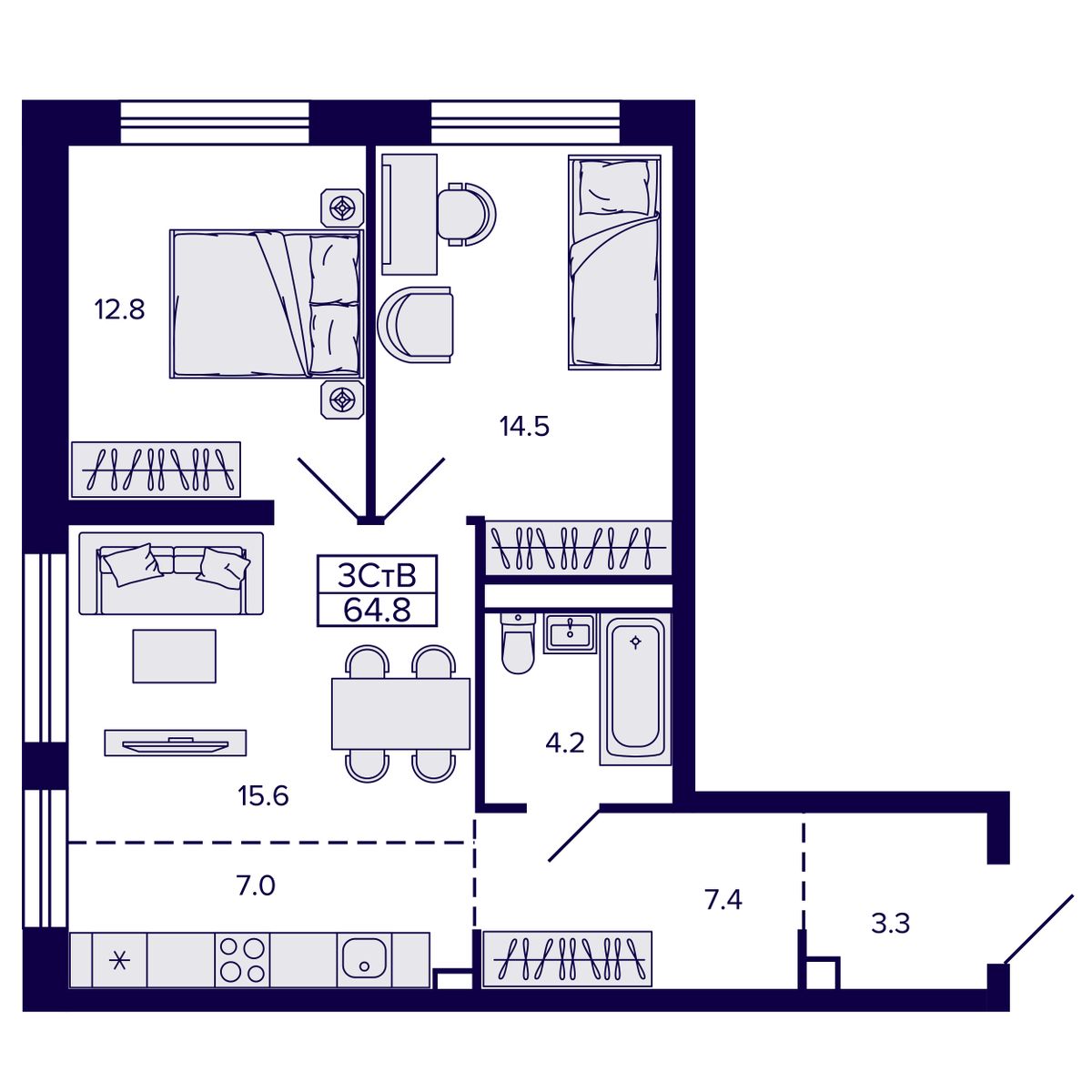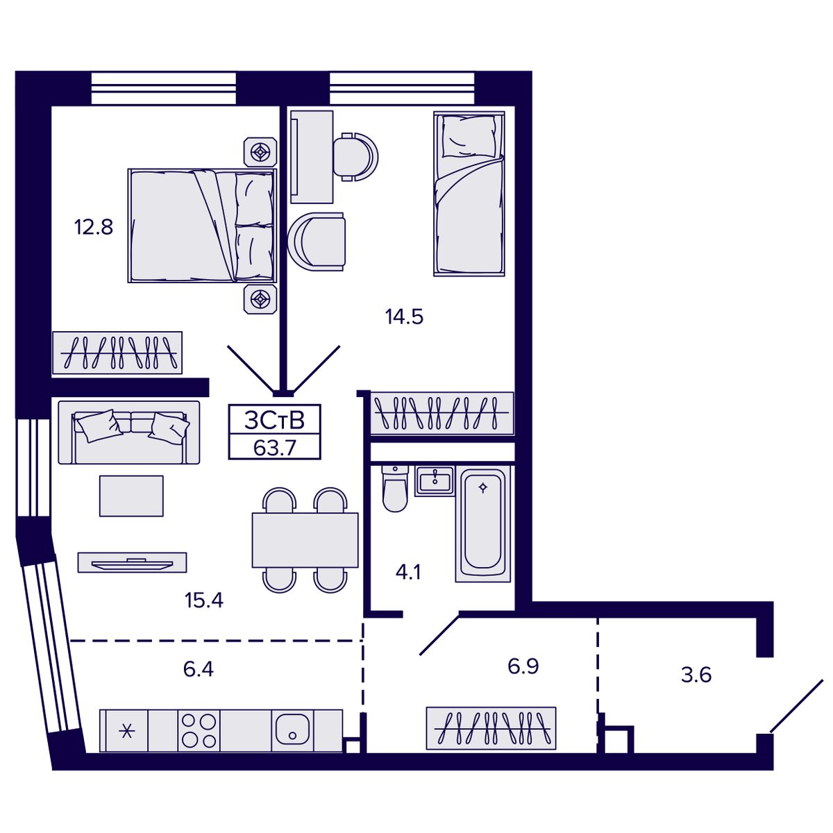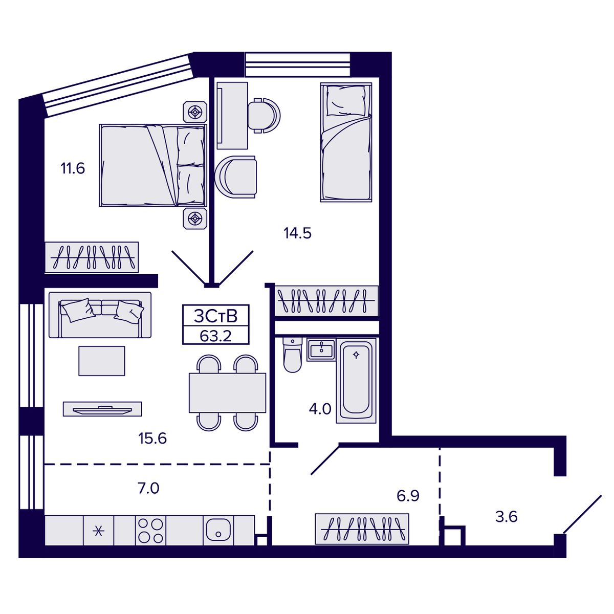 3-комнатная квартира 58.94 м² №141